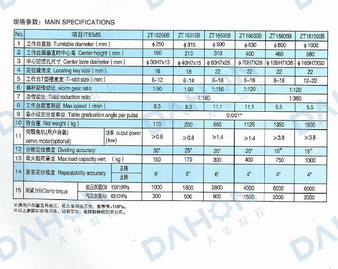 • 產品名稱: ZT16(250-1000)系列立式數控回轉工作臺