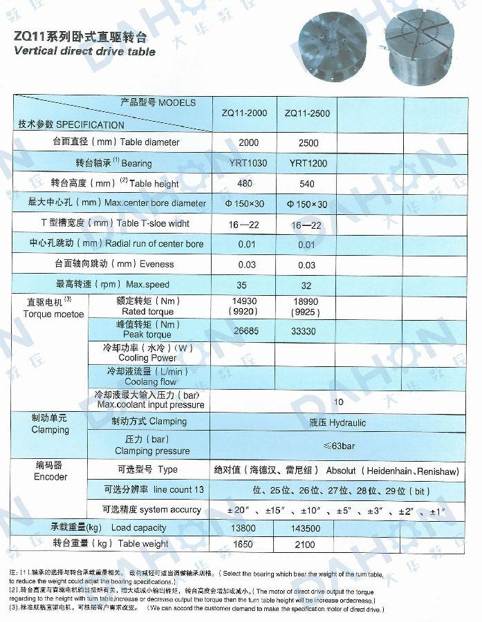 ZQ系列數控直驅回轉工作臺采用大扭矩力矩電機直接驅動,編碼器為反饋信號,可實現高精度的旋轉定位,是數控鏜銑床和加工中心的理想配套附件。工作時,在主機相關控制系統控制下,能夠完成與主機相協調的各種必需的分度回轉運動,實現等分、不等分的連續孔、槽、曲面的加工,且達到較高的精度。煙臺大華數控機床附件有限公司是數控機床附件設備的知名配套企業,可生產多種型號臥式直驅轉臺產品,技術精湛,可定制研發。